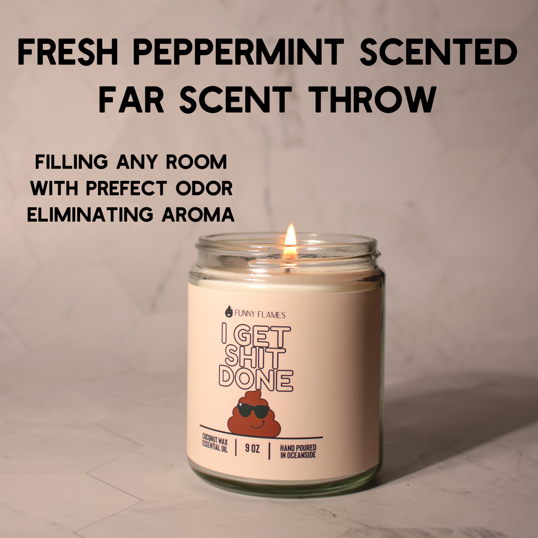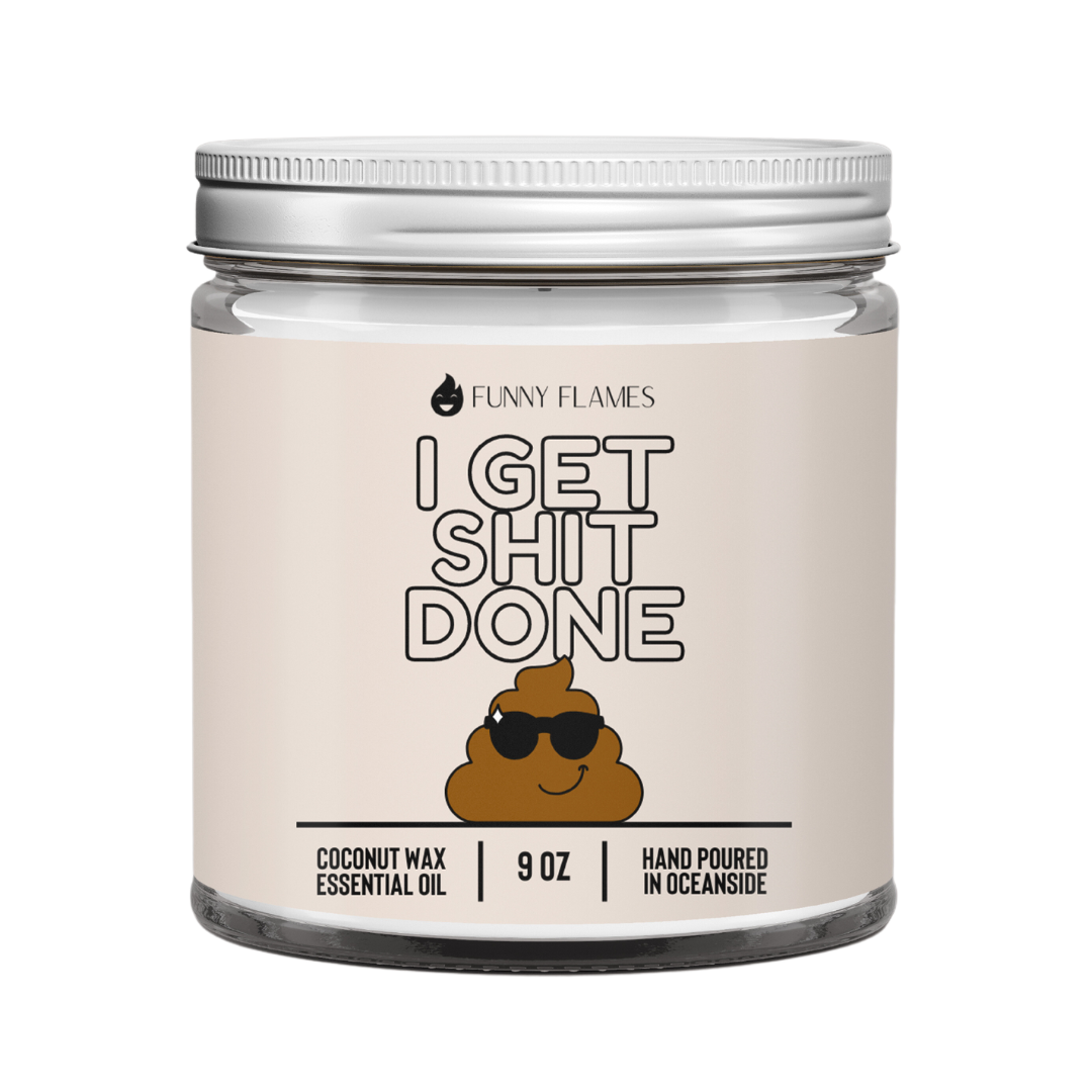 "I Get Shit Done" Bathroom Candle – the perfect blend of humor and functionality to lighten up your bathroom moments! This comical yet practical candle features a playful poop emoji alongside the hilarious phrase "I Get Shit Done," bringing a smile to anyone who sees it.